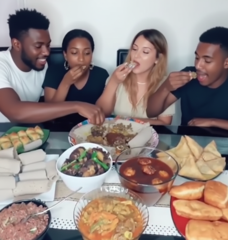 En Etiopía, comer es un acto social. Los platos se colocan en el centro y todos comparten del mismo recipiente, fortaleciendo los lazos familiares y comunitarios.
