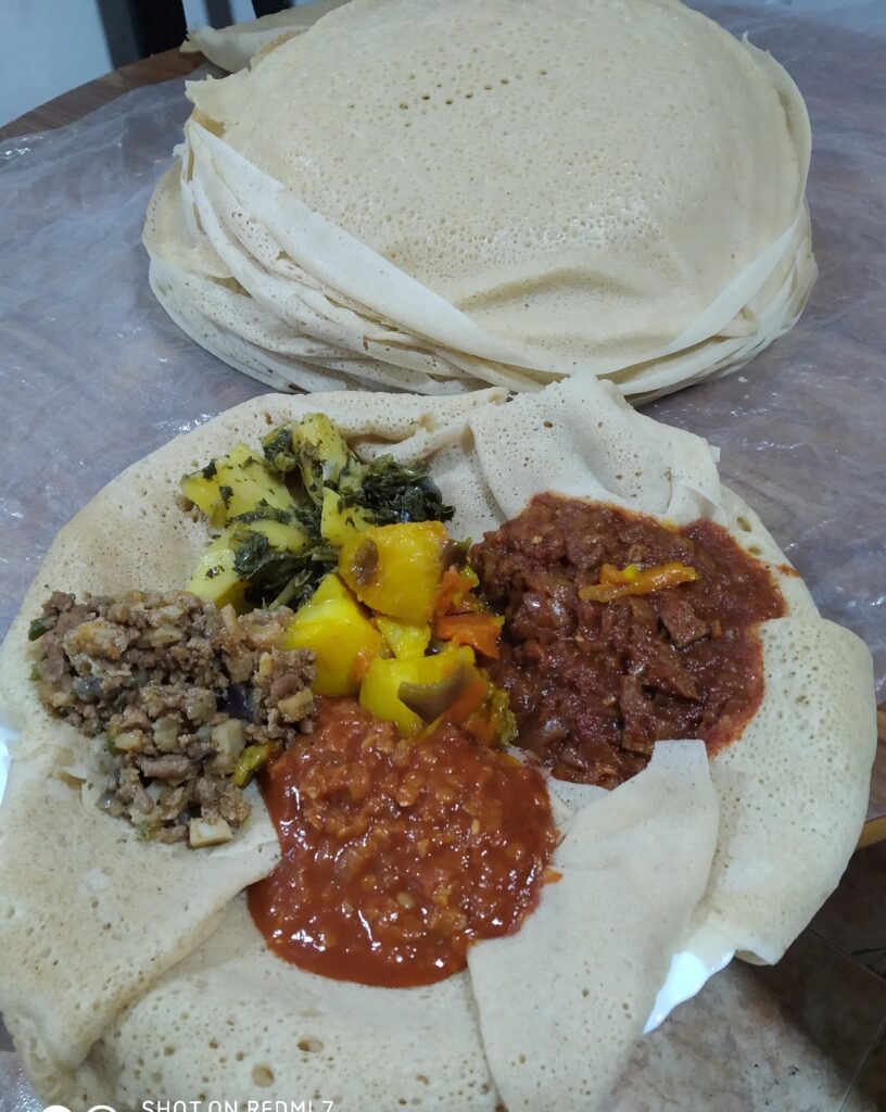 Hay tres tipos de injera que se hase con harina  teff Ne