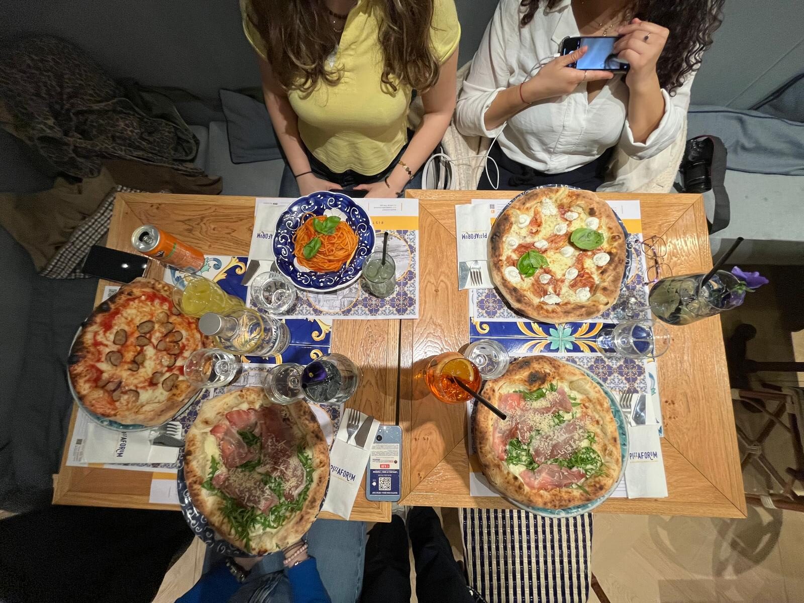 Fue un momento simple, pero significativo. Historia frente a nosotros y comida italiana en la mesa.